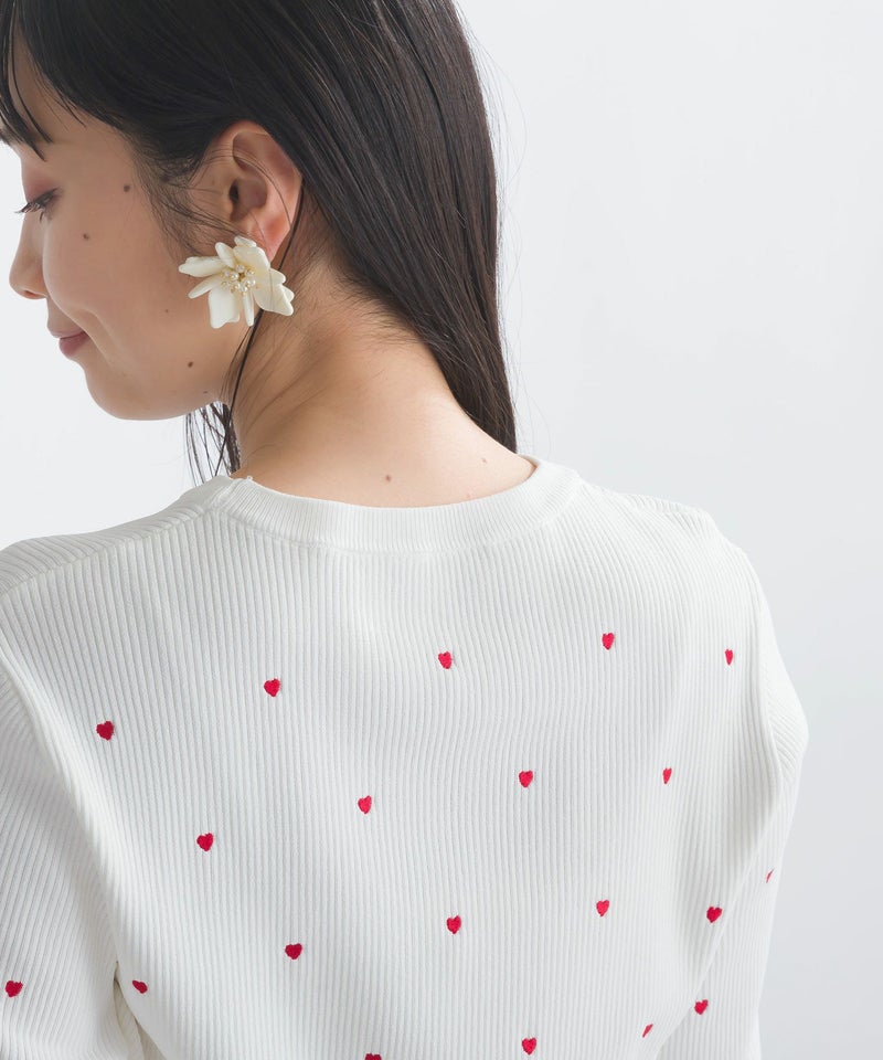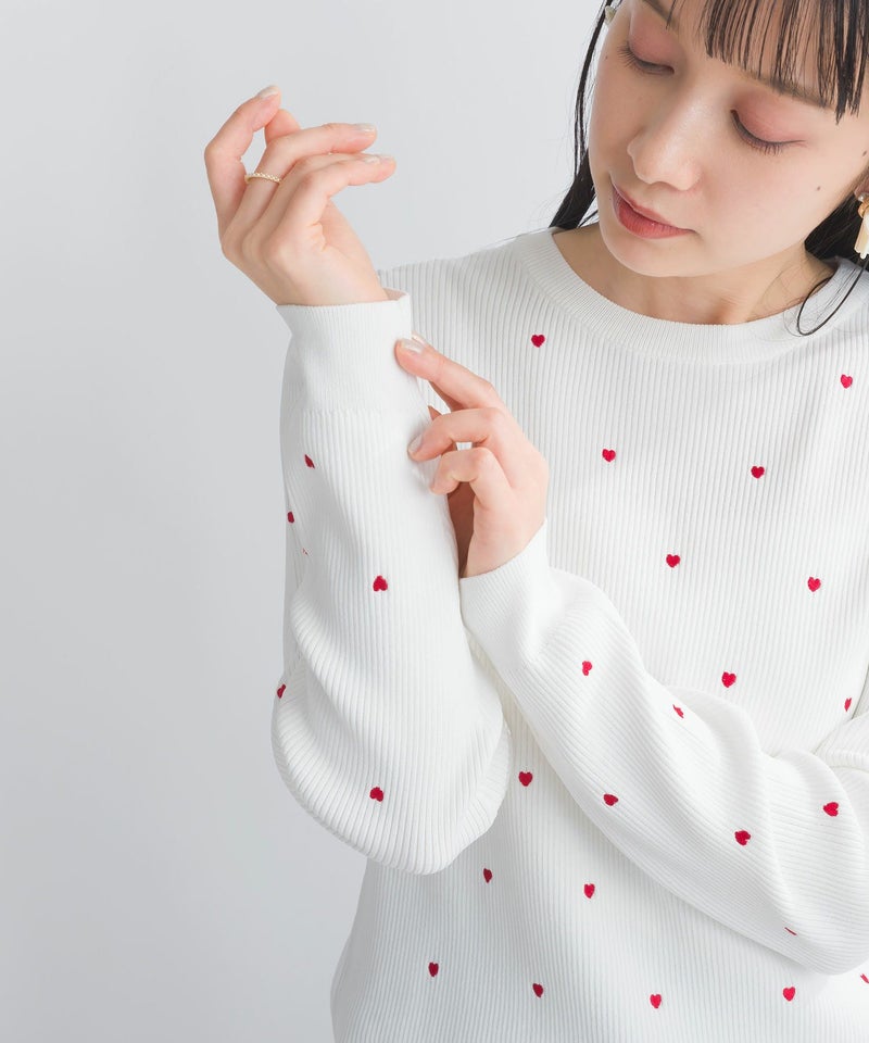 大人可愛いが叶うハート刺繍リブニット