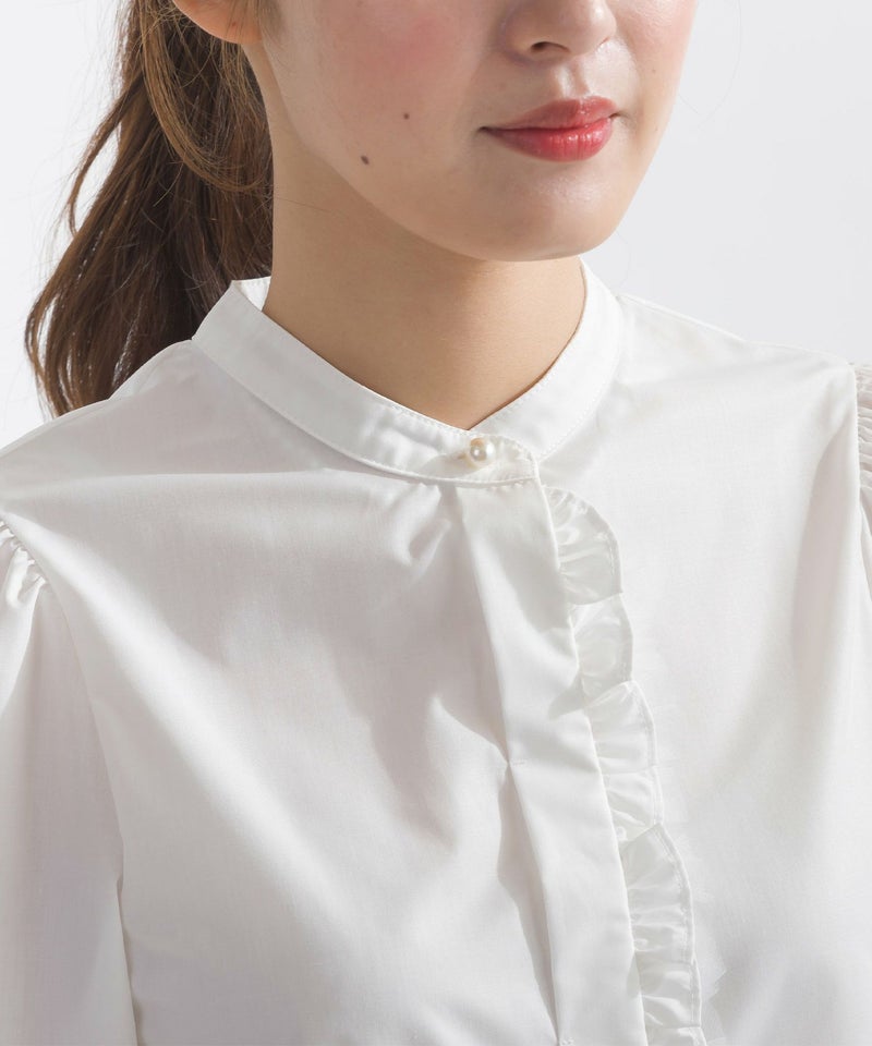 袖口や前立ての一番上のみにパールボタンを採用し、