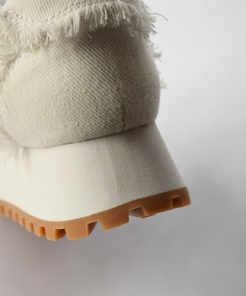 シンプルに見えて、フリンジデザインがポイントのスニーカー。