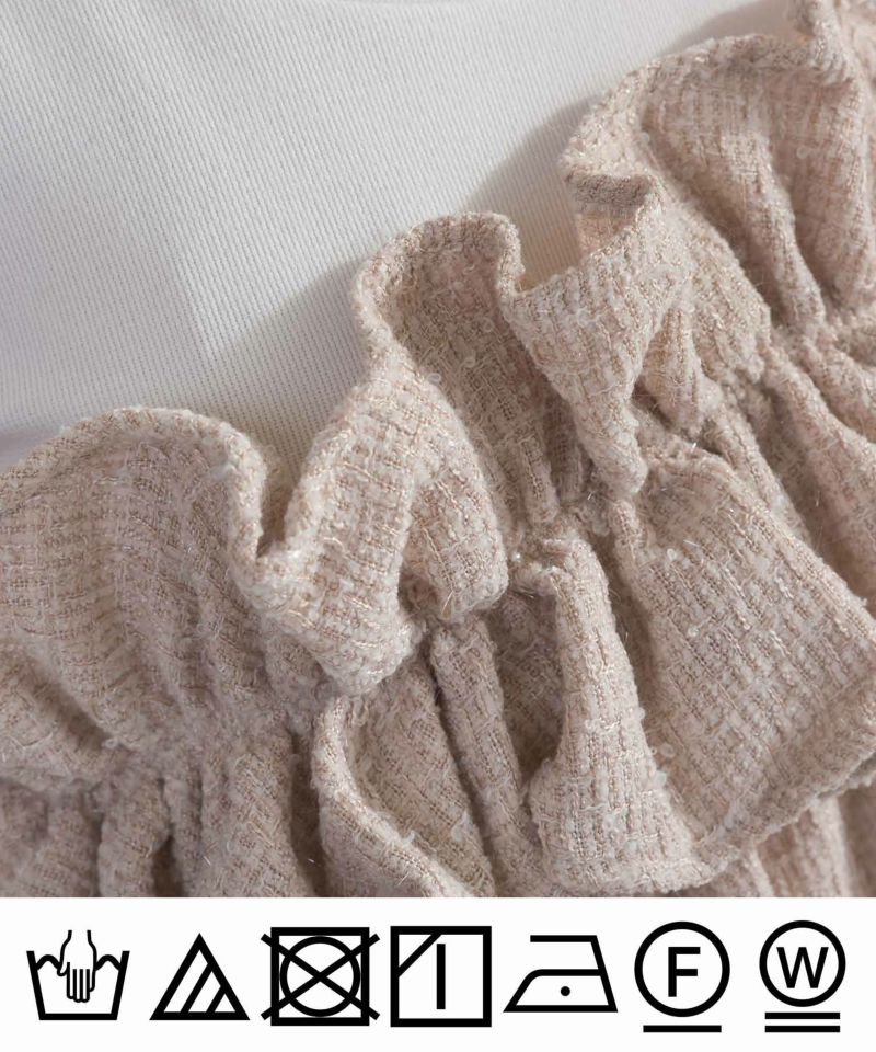 フロントフリルには、さり気なくキラキラと光るツイード生地を使用。