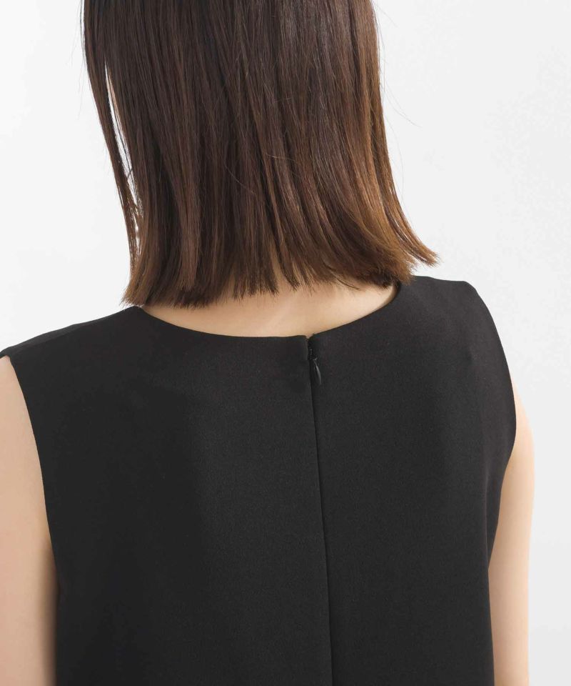 一枚ですっきりとした着こなしはもちろん、ノーカラー&ノースリーブだから、