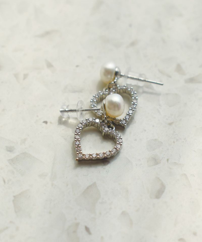 小ぶりのパールにきらめくハートのモチーフが女性らしさを引き立てます。
