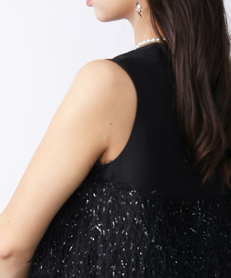 ラメ糸をミックスしたフェザーが、自然なきらめきを纏わせてくれます。