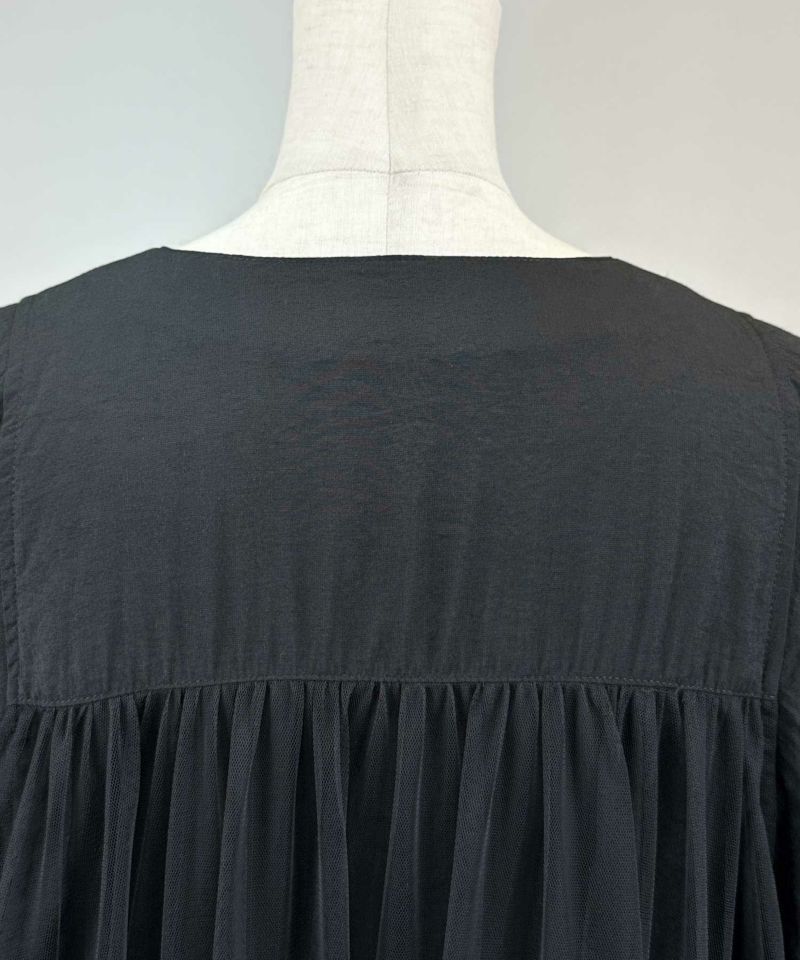 バックはヨーク下からチュール切り替え。少し長めで、動きとともに美しく広がるデザインになっています。