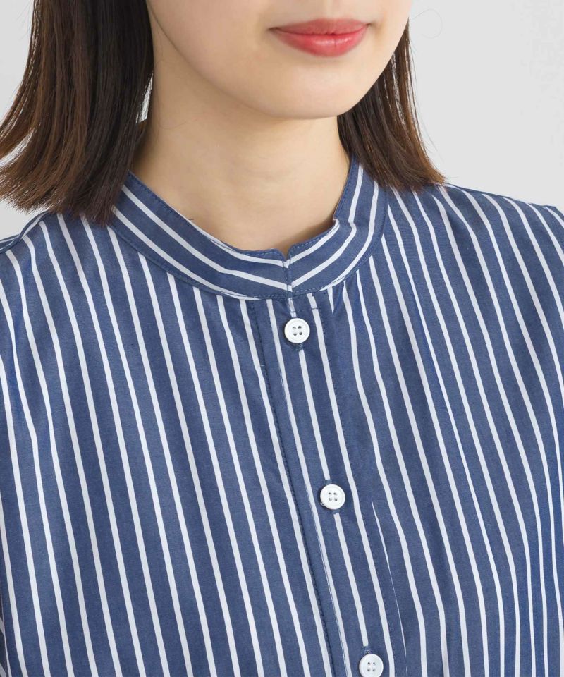 コットンブレンドのストライプ柄の布帛生地を使用。