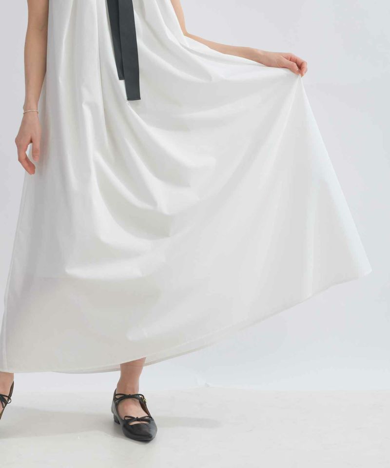 襟元のたっぷりとしたボリュームはそのままにふんわりと広がるフレアシルエット