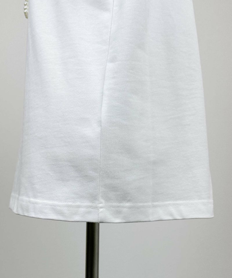 カジュアルアイテムながらも、パールによって可愛らしさと華やかさが増し、