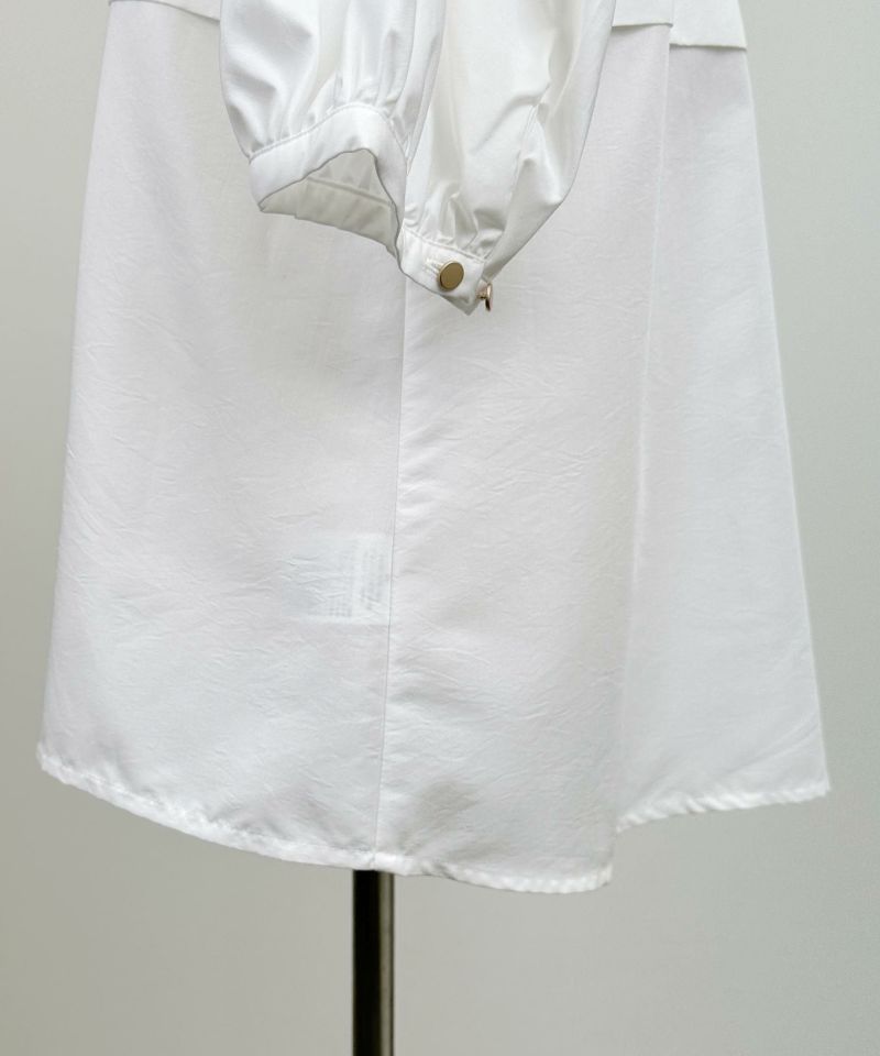 身頃から袖のタックへとつながるプリーツが新鮮で、特徴的な陰影と動きを生み出します。