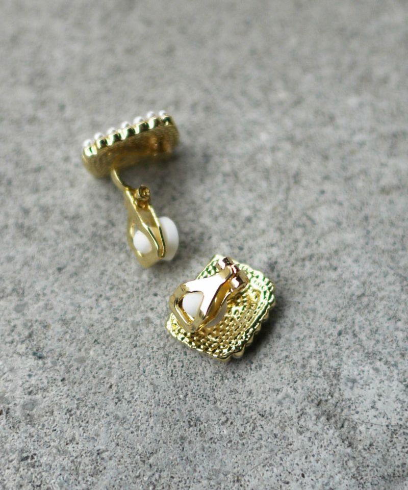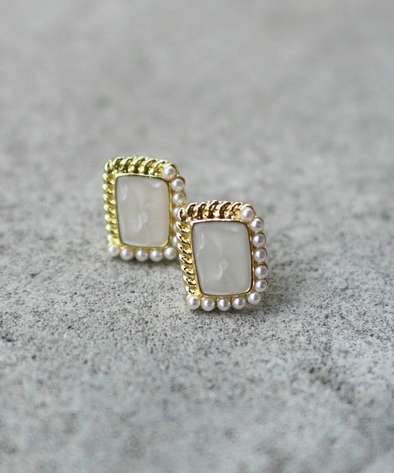 マザーオブパールのような乳白色のストーンにゴールドフレームのイヤリング