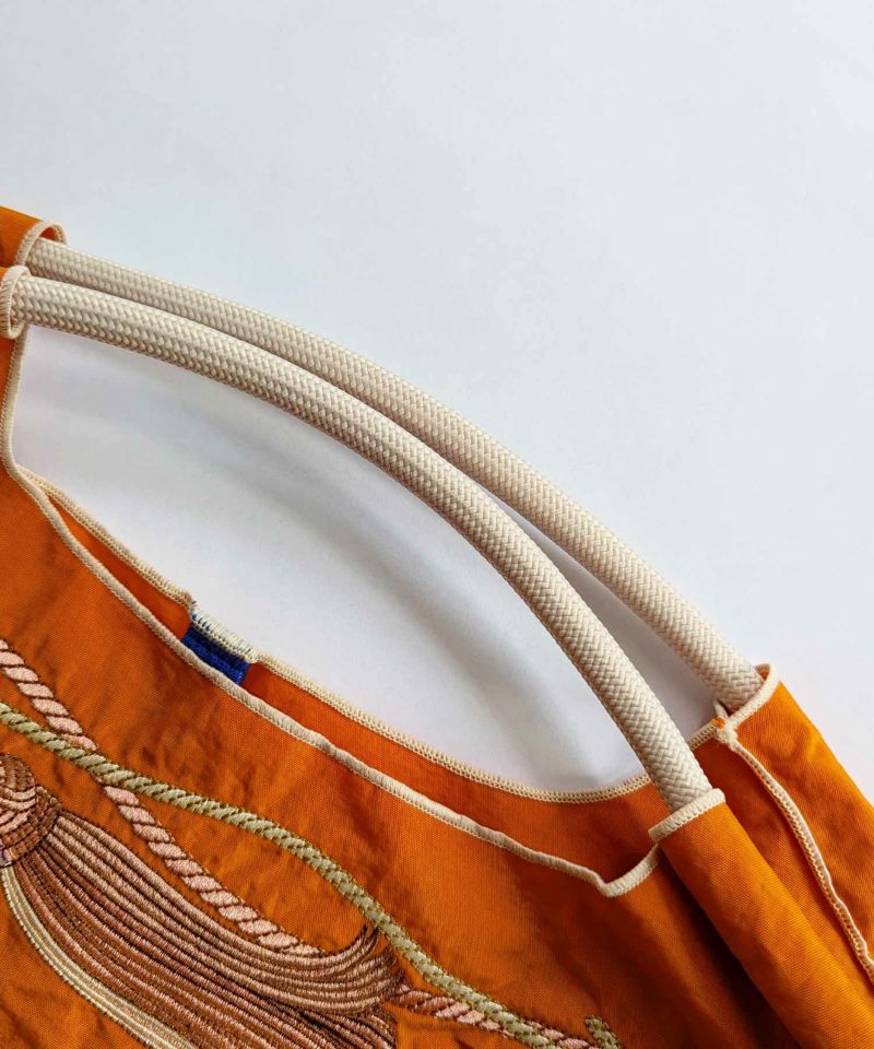 そんな希望を叶えるために、耐久性、撥水性に優れた厚手のポリエステル素材に、グラフィックデザインをそのまま「刺繍」で施すことで、高級感がありデザイン性の高いショッピングバッグを作りました。