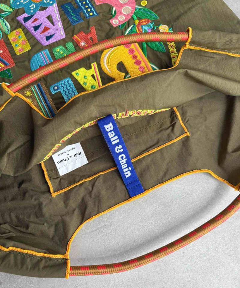そんな希望を叶えるために、耐久性、撥水性に優れた厚手のポリエステル素材に、グラフィックデザインをそのまま「刺繍」で施すことで、高級感がありデザイン性の高いショッピングバッグを作りました。