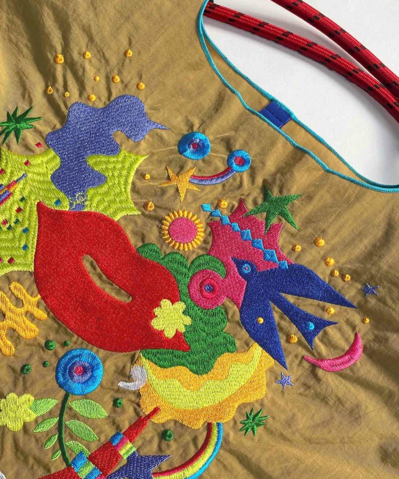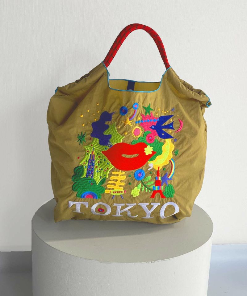 そんな希望を叶えるために、耐久性、撥水性に優れた厚手のポリエステル素材に、グラフィックデザインをそのまま「刺繍」で施すことで、高級感がありデザイン性の高いショッピングバッグを作りました。