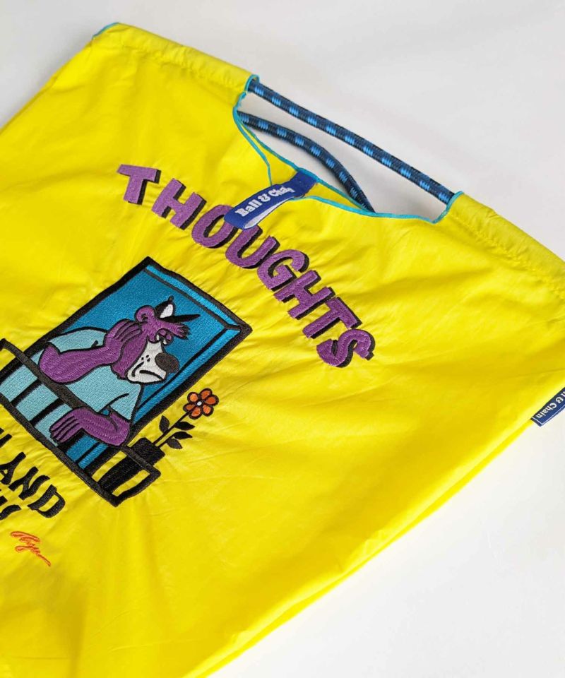 そんな希望を叶えるために、耐久性、撥水性に優れた厚手のポリエステル素材に、グラフィックデザインをそのまま「刺繍」で施すことで、高級感がありデザイン性の高いショッピングバッグを作りました。