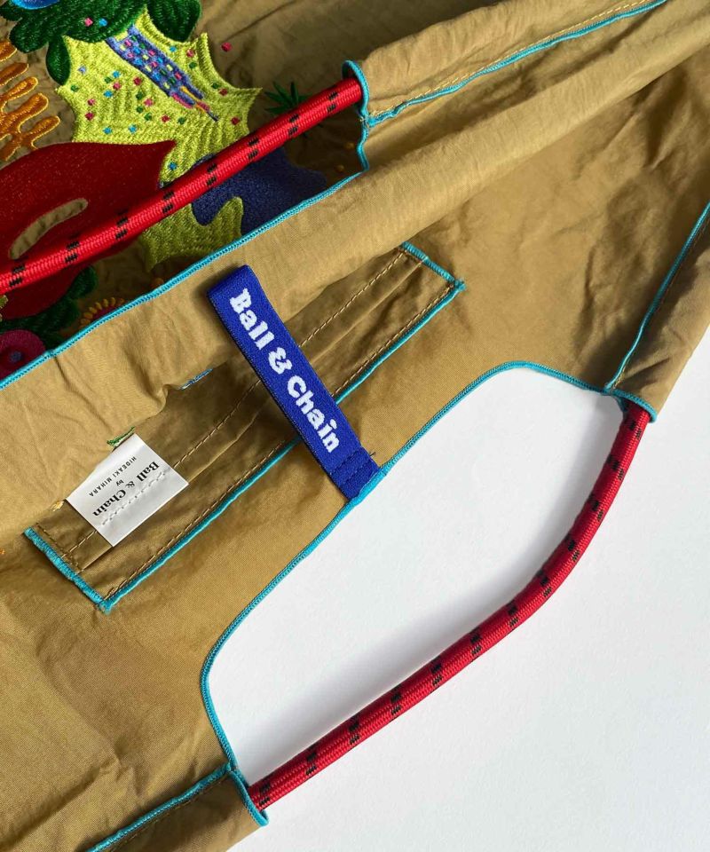 そんな希望を叶えるために、耐久性、撥水性に優れた厚手のポリエステル素材に、グラフィックデザインをそのまま「刺繍」で施すことで、高級感がありデザイン性の高いショッピングバッグを作りました。