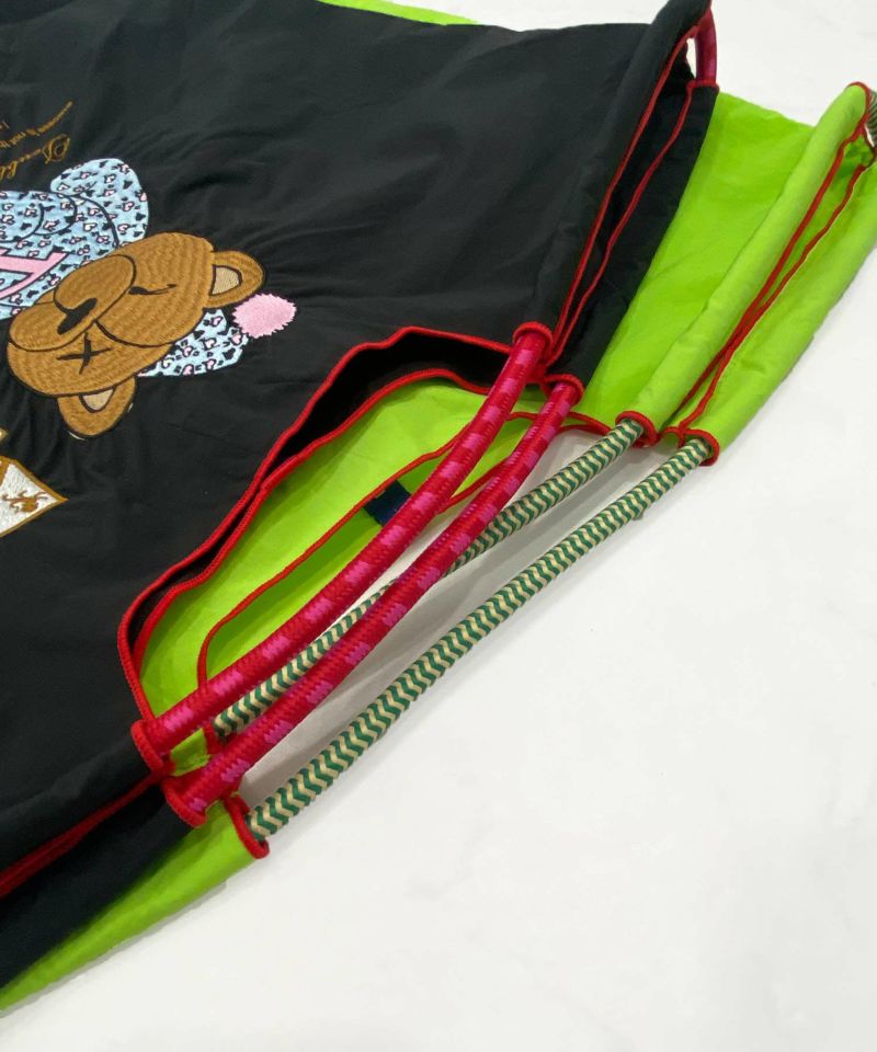 そんな希望を叶えるために、耐久性、撥水性に優れた厚手のポリエステル素材に、グラフィックデザインをそのまま「刺繍」で施すことで、高級感がありデザイン性の高いショッピングバッグを作りました。