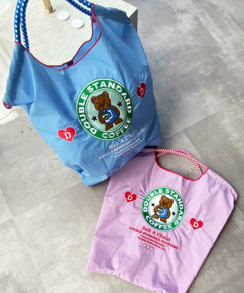 ダブスタのアイコンであるテディベアがコーヒーを飲んでいるキュートなデザイン。