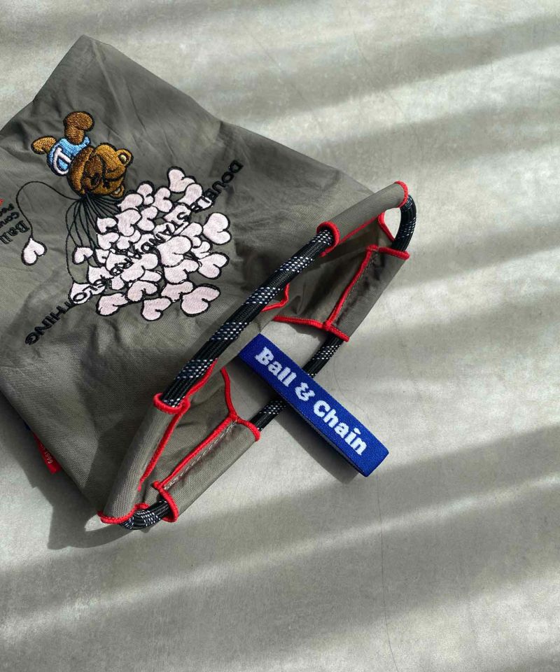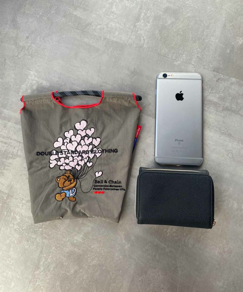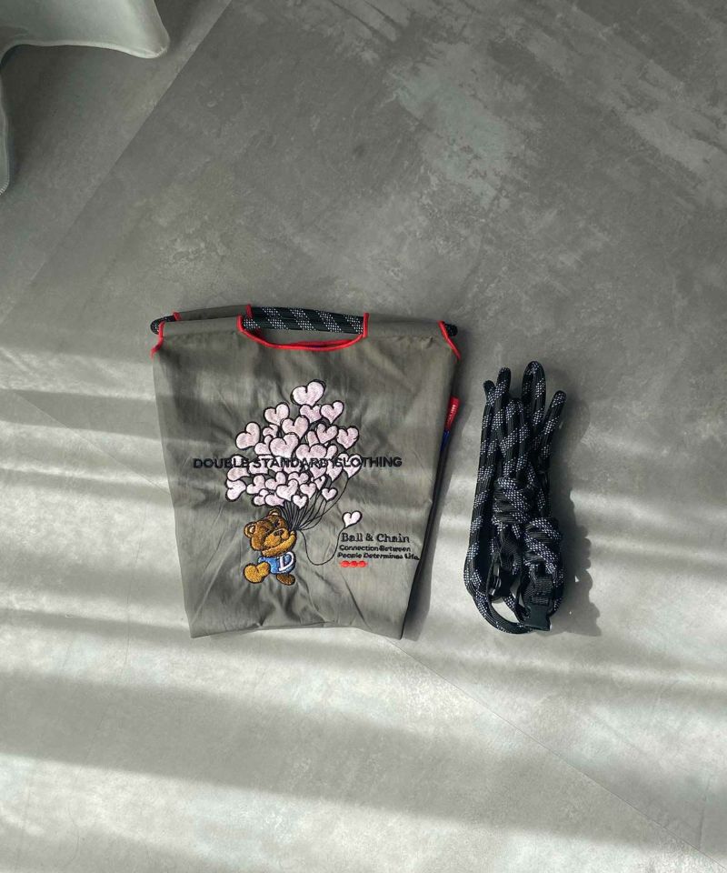 シックなグレーの生地に、ダブスタの新アイコンであるテディベアが刺繍されたエコバッグ。