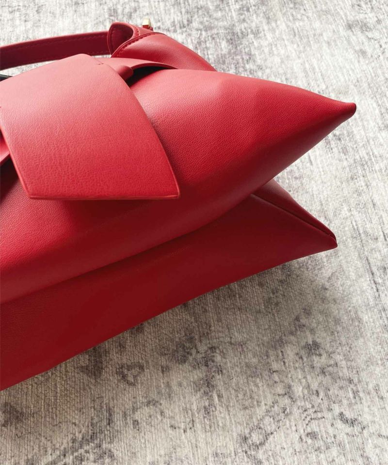 さりげないデザインのビッグリボンとゴールドがアクセントとなり、