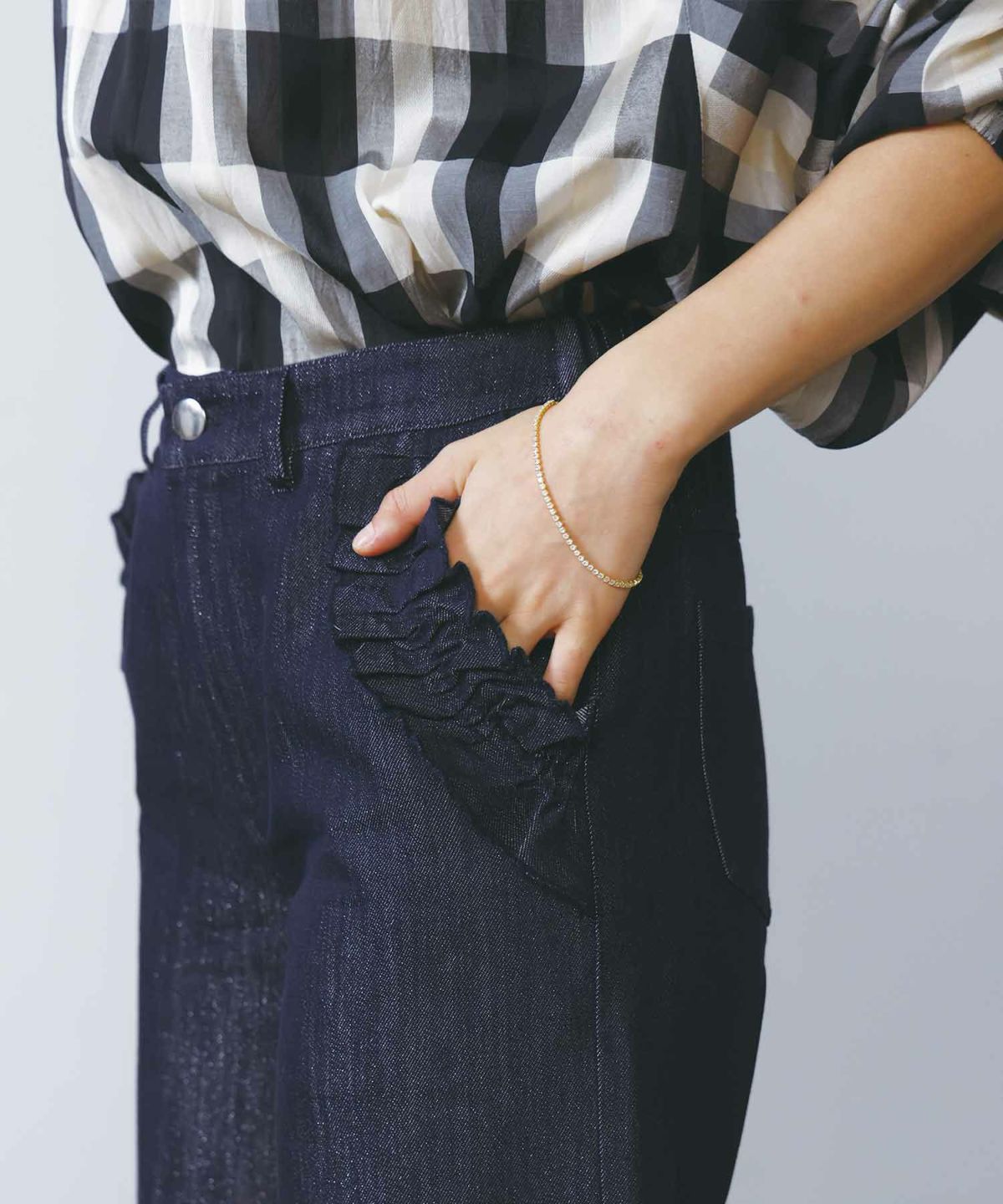 【セットアップ可能】ポケットフリルラメデニムパンツ