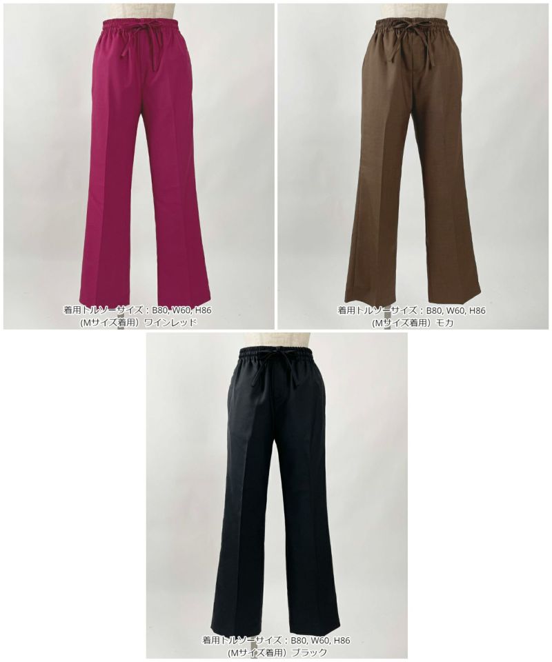 ウエストはゴム+紐仕様でストレスなく着用できます。