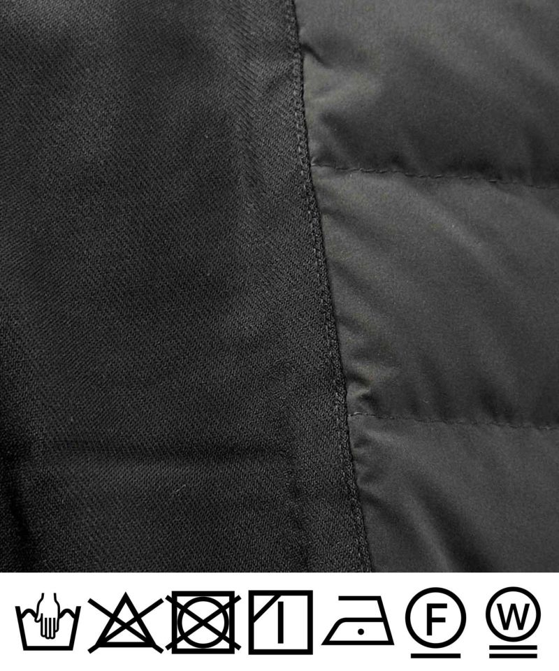 | 素材 | 前身頃: ポリエステル100% 後身頃: レーヨン65%, ナイロン30%, ポリウレタン5% 充填物: ダウン90%,フェザー10% |