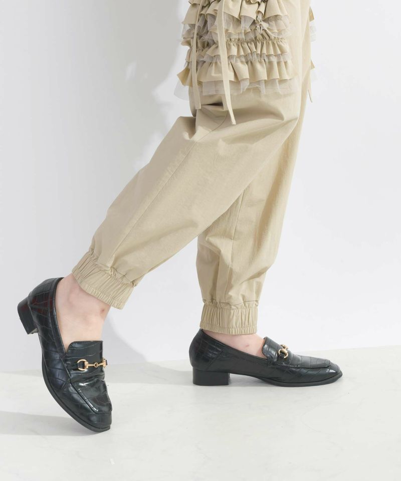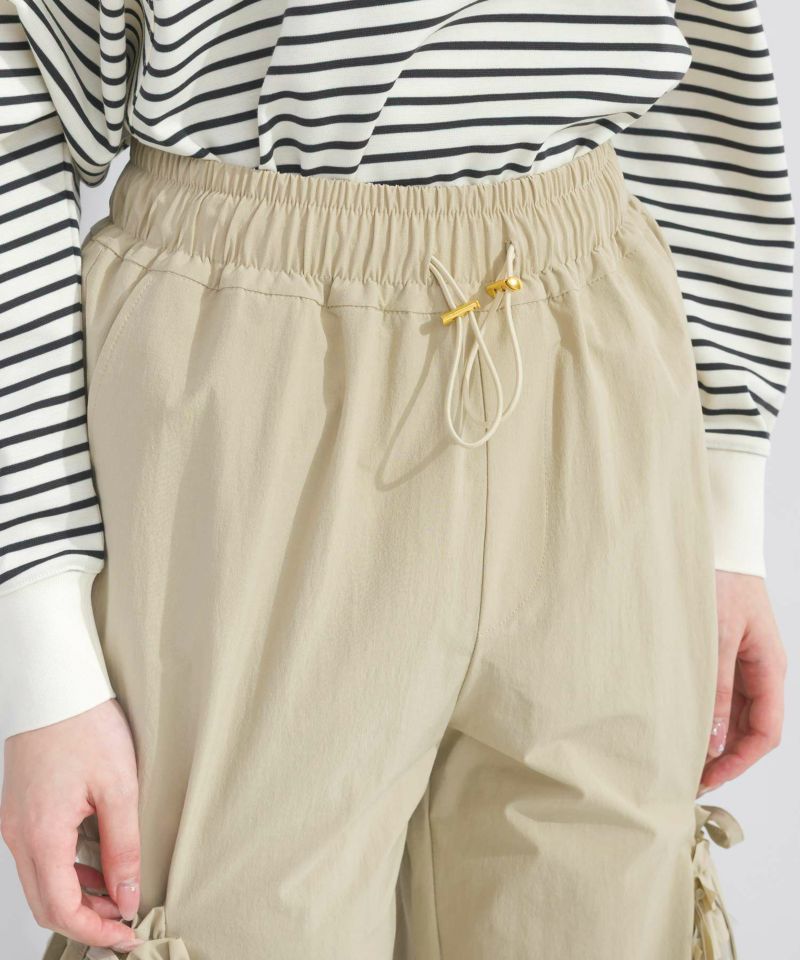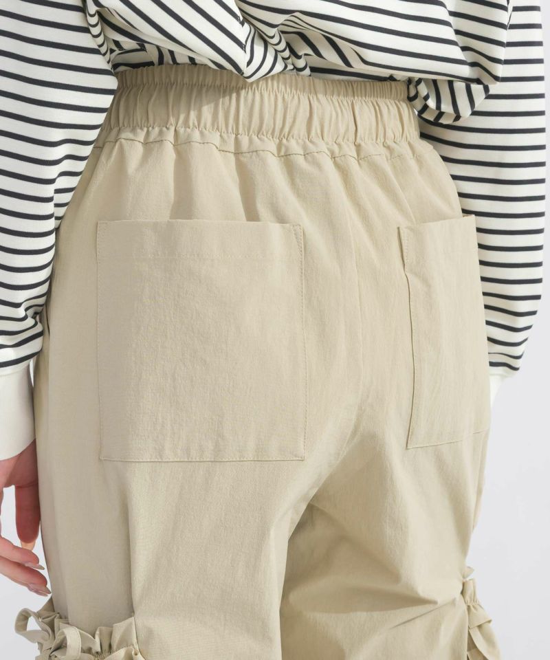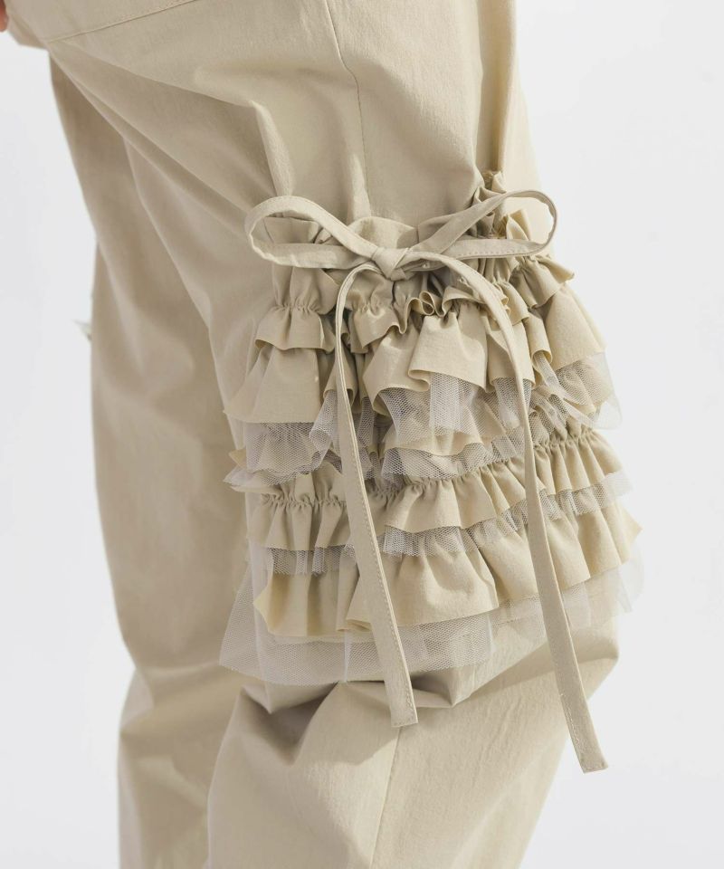 存在感のあるポケットフリルが目を惹く上品なカーゴパンツ。