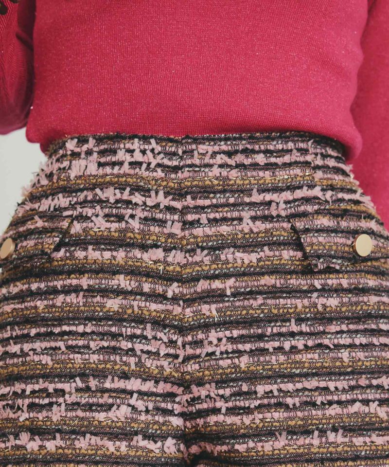 ラメ糸や異素材のカラー糸を織り込んだツイード素材は、優しく光をまといながらも、柔らかくて履き心地らくちん。
