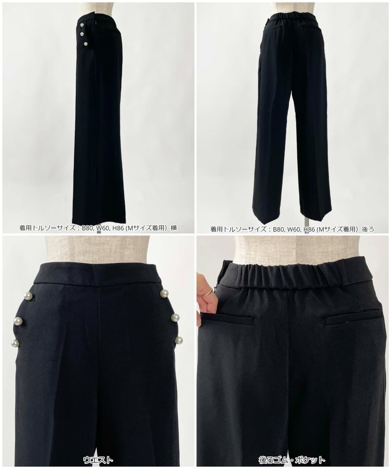 サイドに付いたパールが上品できれいめなワイドパンツ