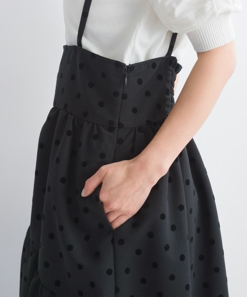 適度にハリ感のある生地にドット柄のフロック加工が施されています。