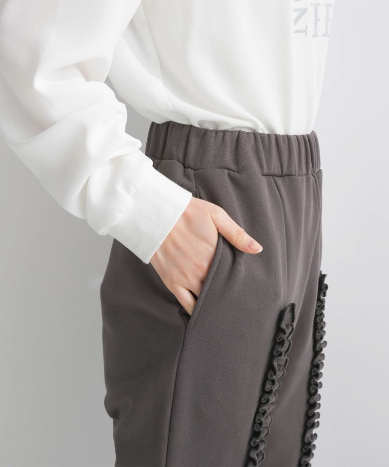 ラフになりやすいパンツも、可愛らしく女性らしい印象に見せてくれます。