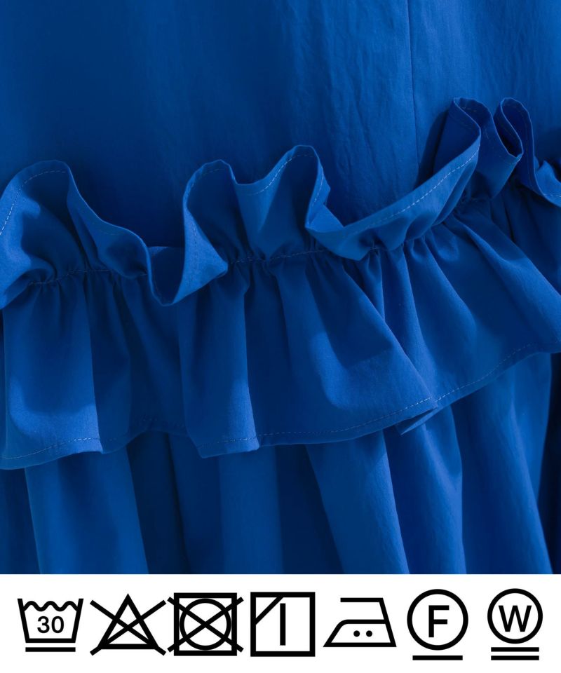 たっぷりのギャザーを施した立体的で華やかなフリルと、
