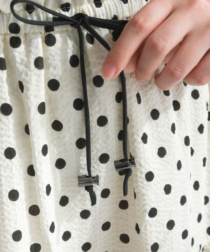 たっぷりのドット柄で、コーデのアクセントにも最適なロマンティックなスカートになっています。