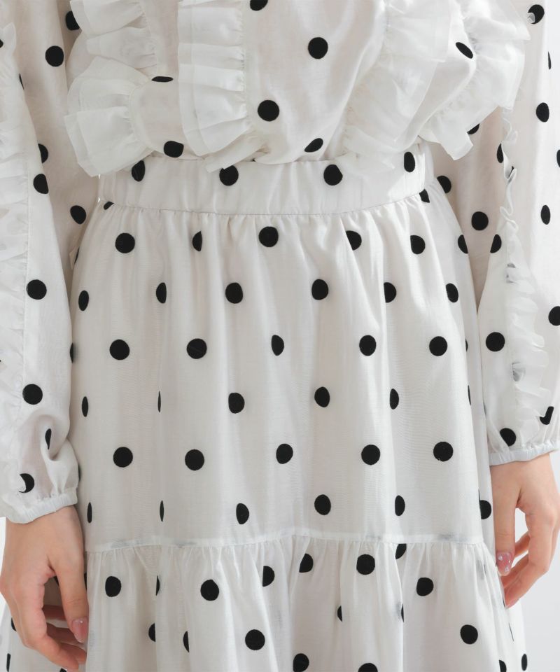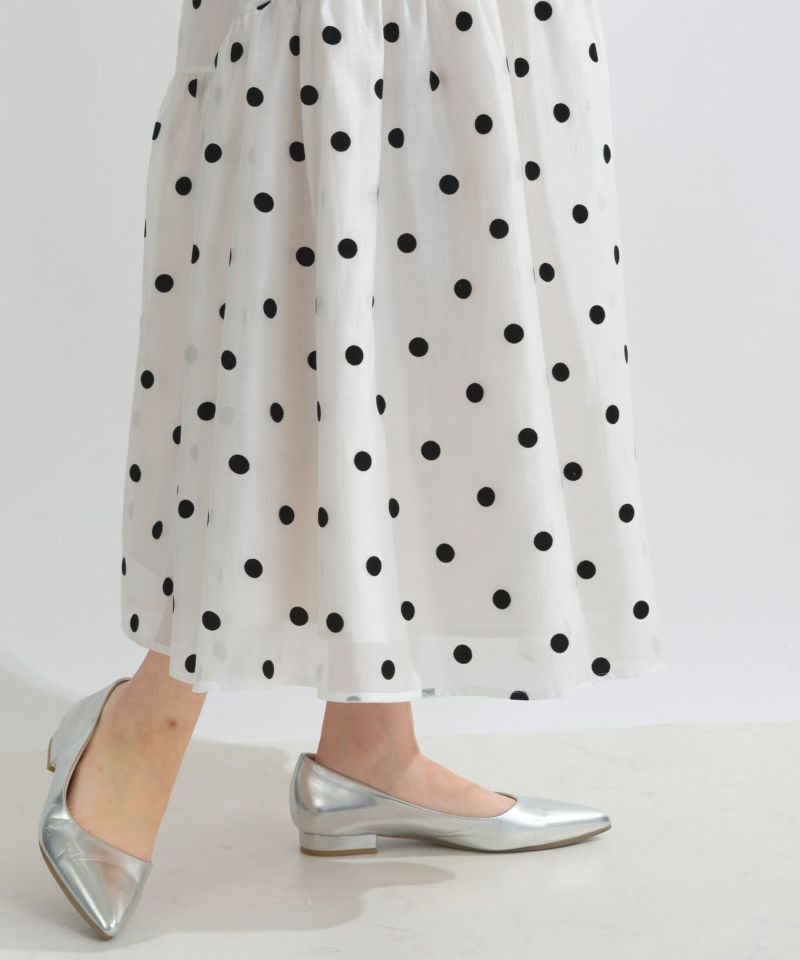 歩くたびに軽やかに揺れるシルエットが素敵で、シンプルに合わせてもドット柄が華やかな印象を与えてくれます。
