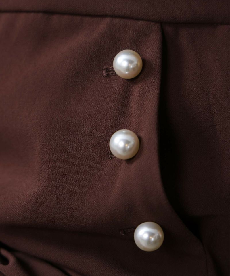 サイドに付いたパールが上品できれいめなワイドパンツ