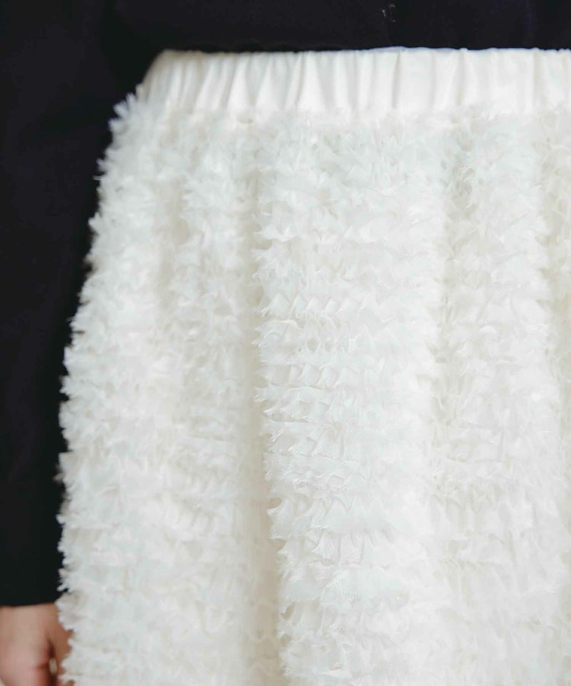 チュール生地の表面には、透け感ある生地を細かくウェーブ状に重ね、