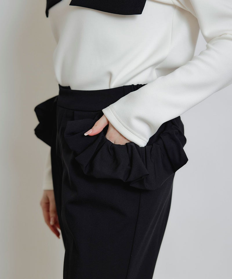 立体的なフリルデザインを大胆にサイドポケットにプラスし、