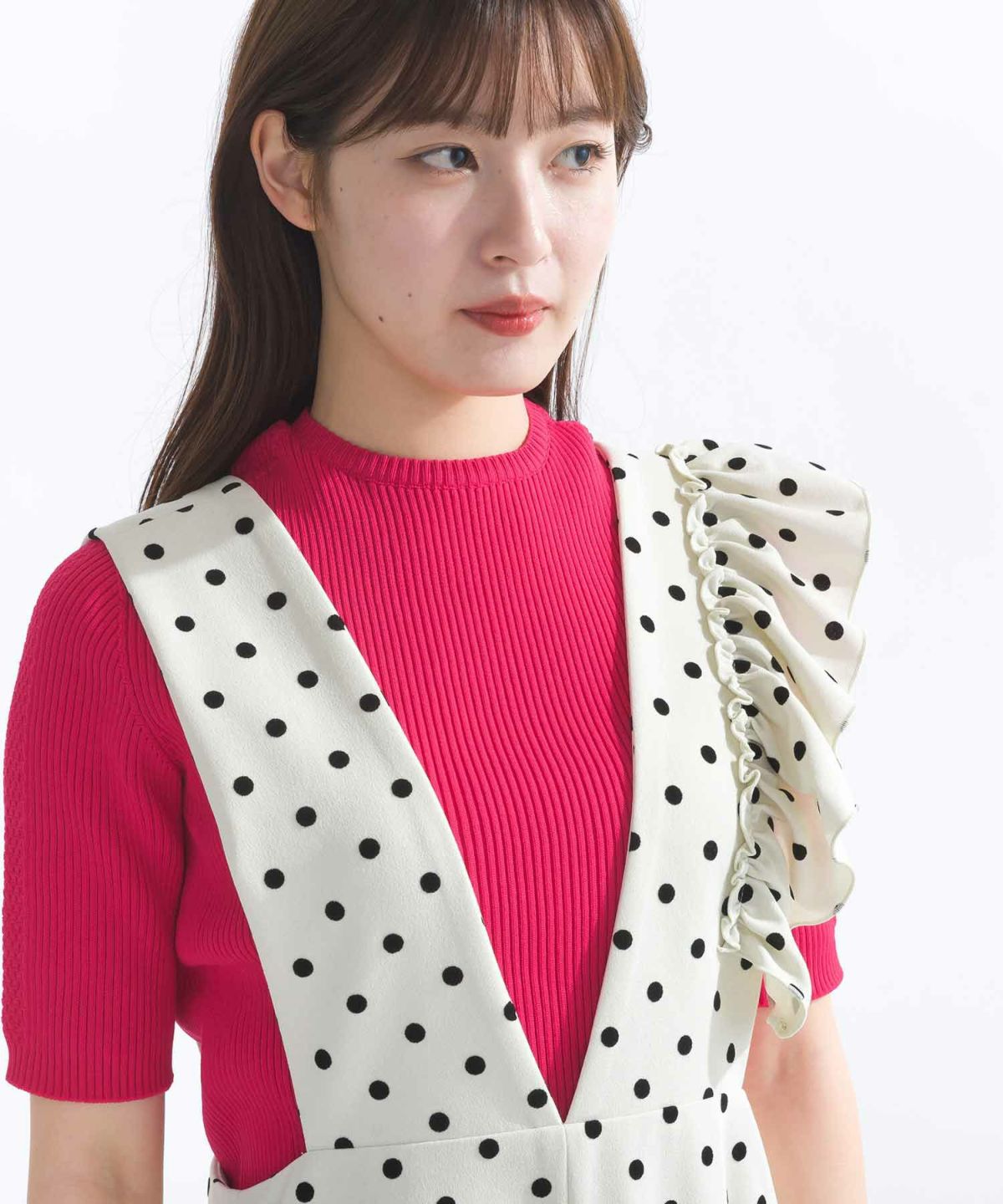 フロッキードットフリル付きジャンスカ