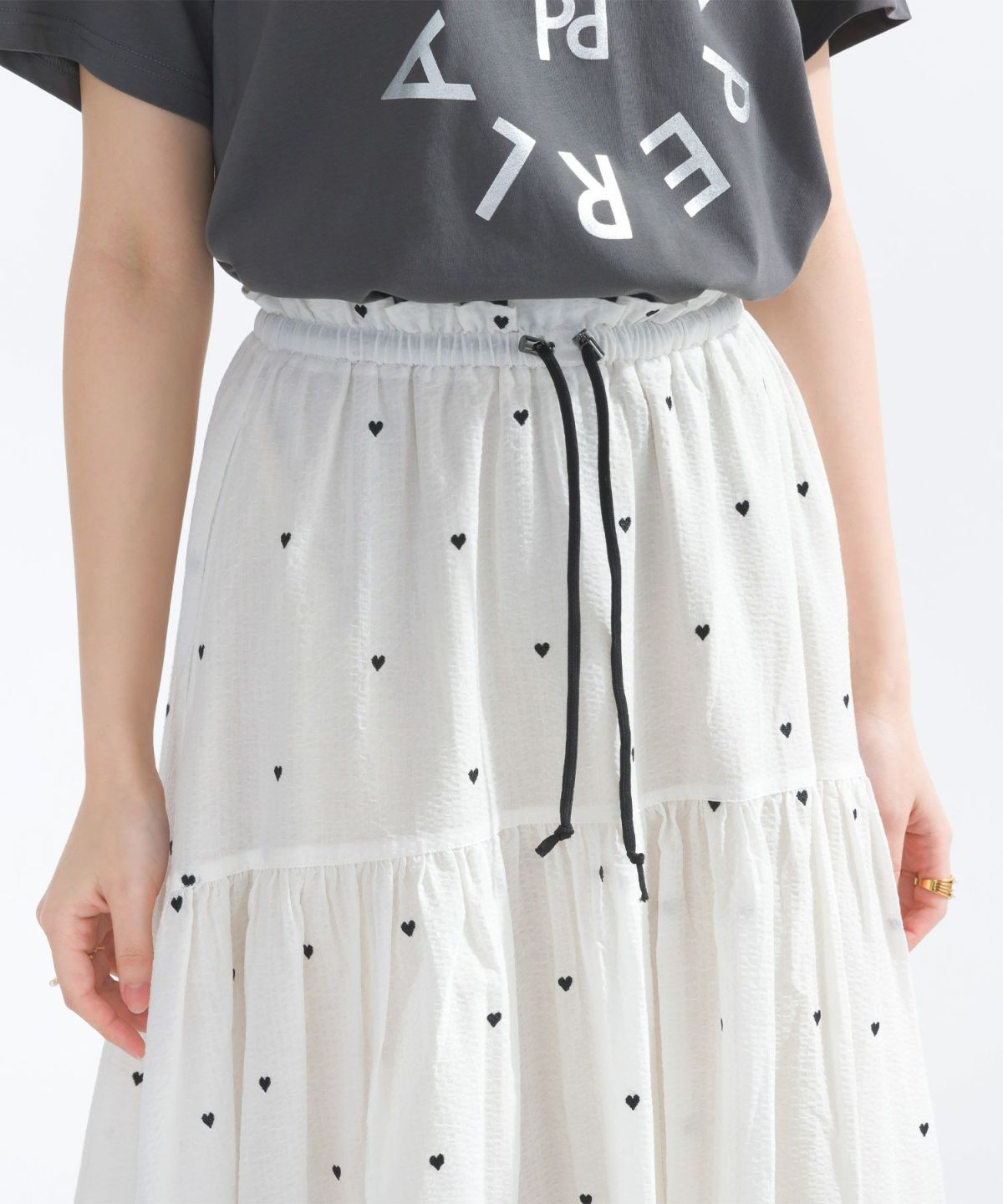 ハート柄ドロスト切り替えコットンロングスカート
