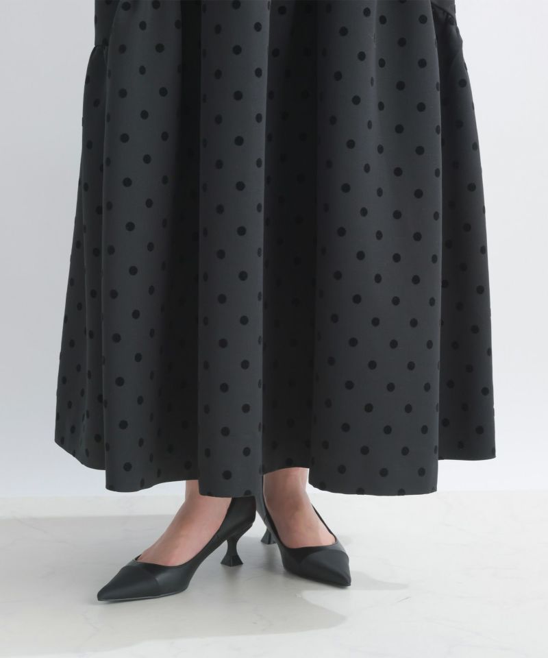 適度にハリ感のある生地にドット柄のフロック加工が施されています。