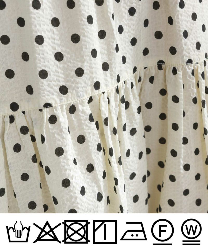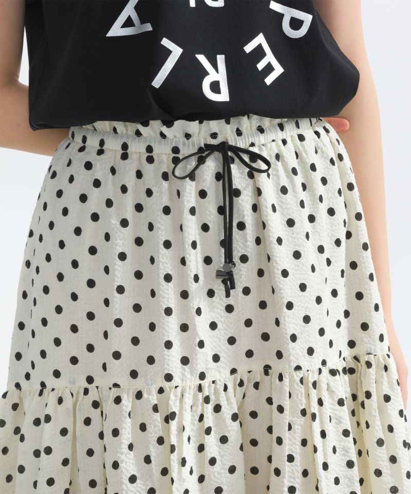 たっぷりのドット柄で、コーデのアクセントにも最適なロマンティックなスカートになっています。