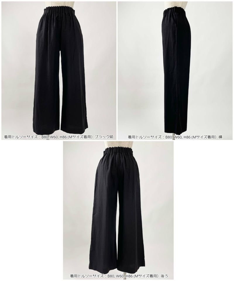ワイドシルエットにウエストゴム仕様でリラクシーな履き心地のパンツです。