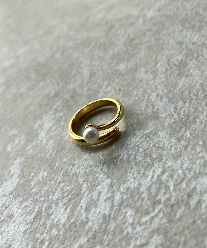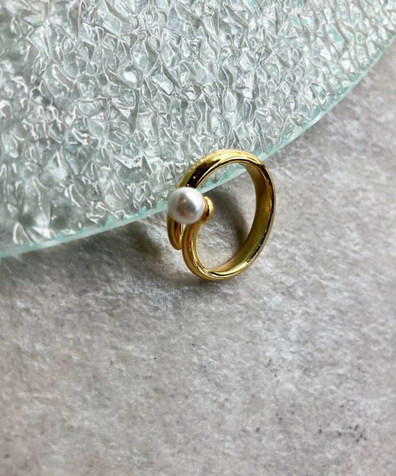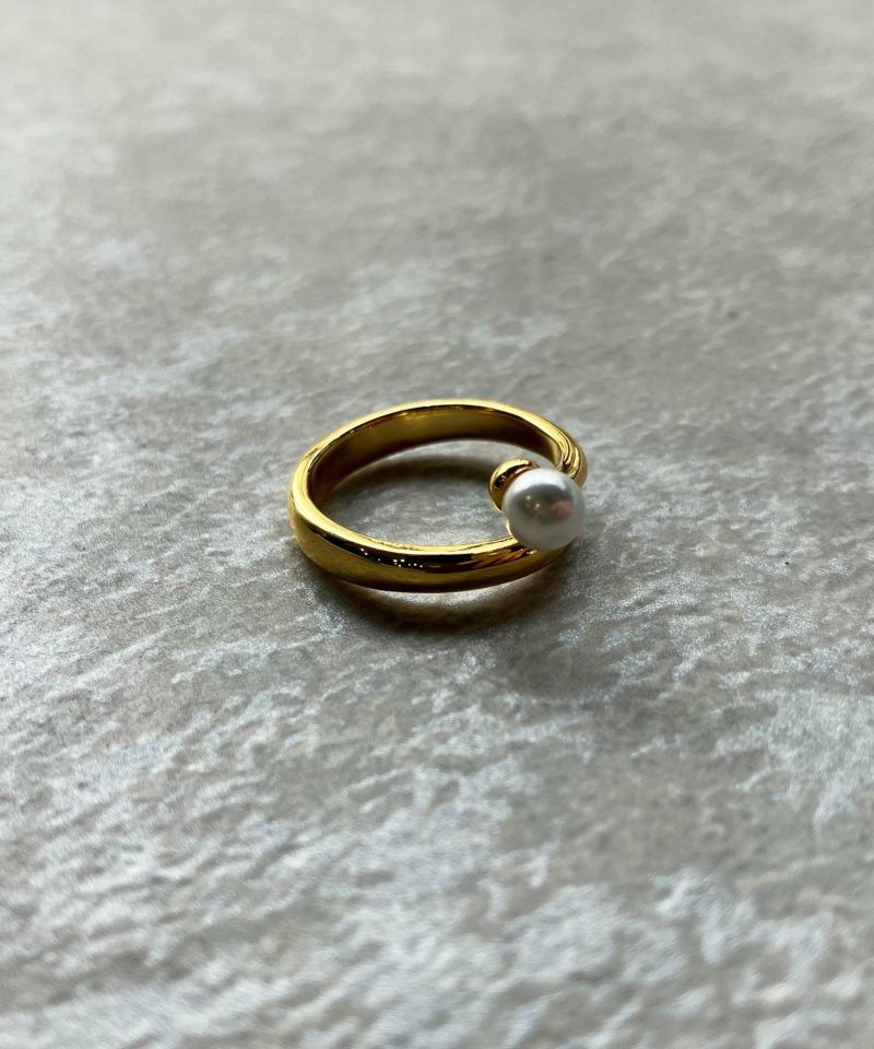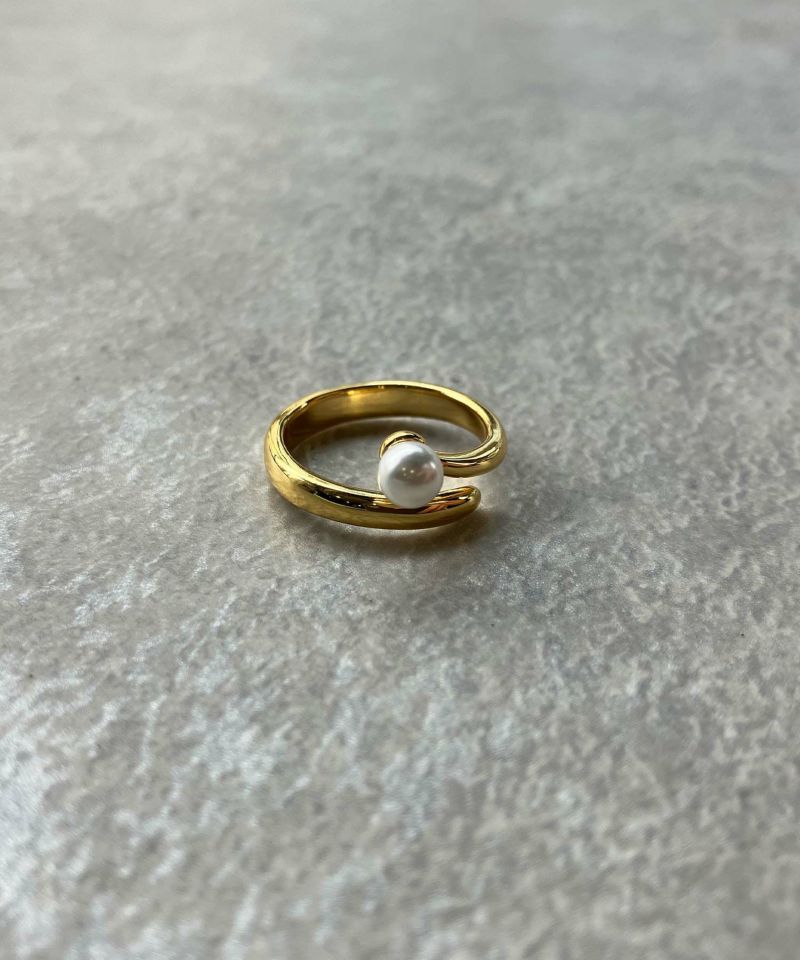 流線型のラインの土台に一粒パールがぽつんと乗ったシンプルなデザイン。