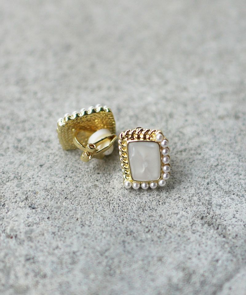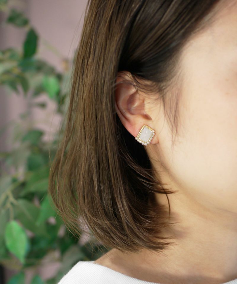 マザーオブパールのような乳白色のストーンにゴールドフレームのイヤリング