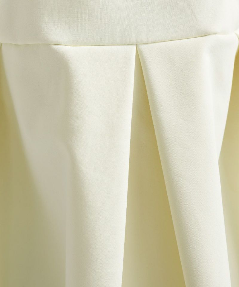ハリのある素材に袖口やウエスト切替え部分にタックを施し、
