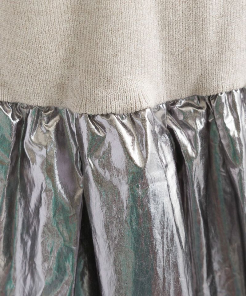 メタリックの光沢感が目を惹く大人のドッキングワンピース