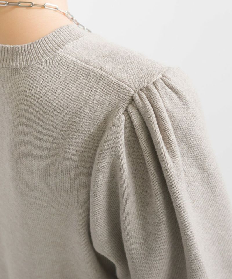 肩部分にギャザーを施し、女性らしさと動きのあるデザインをプラス。