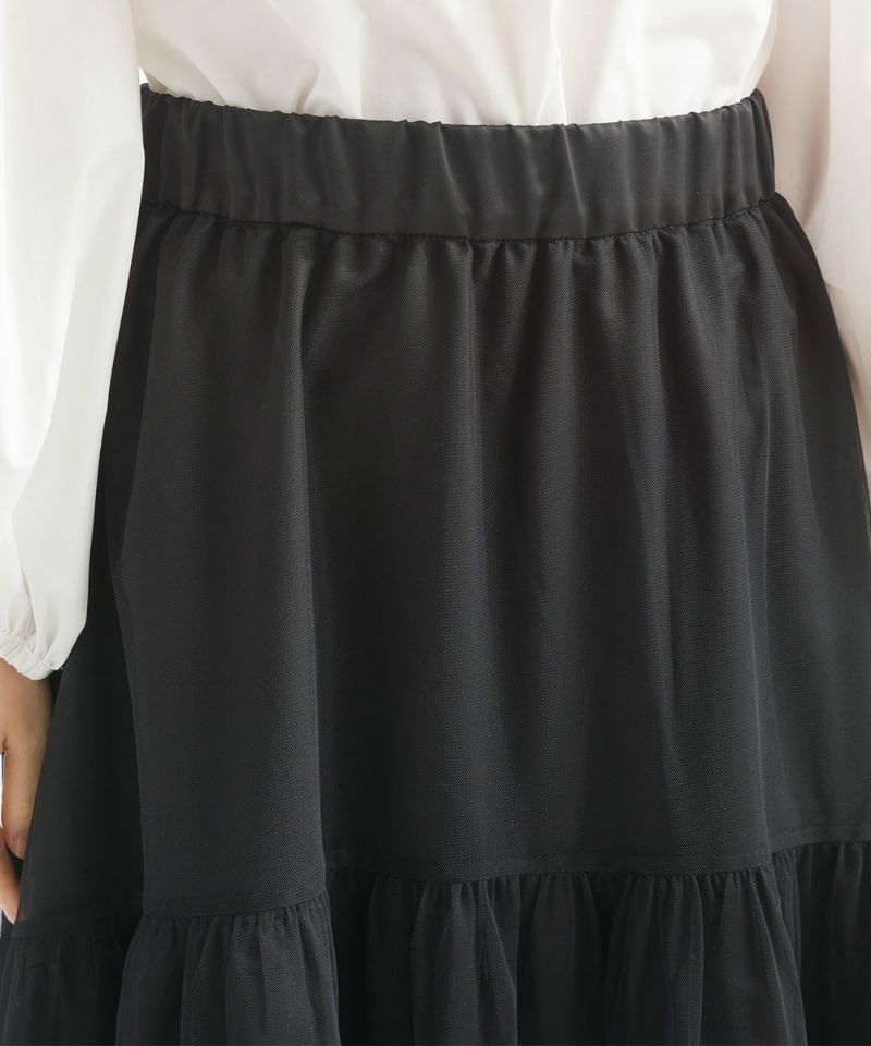 チュールならではの透け感も相まって軽やかで履くだけで女性らしさ溢れる一枚に仕上げました。