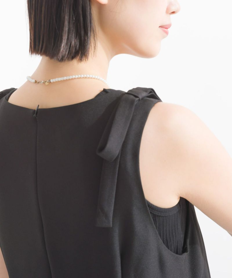 シンプルながらも肩の立体的なリボンでアクセントをプラス。