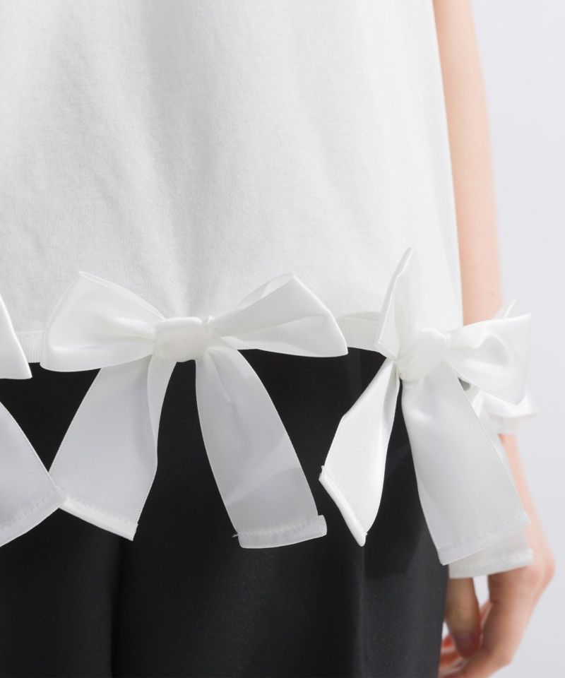 フロント裾部分に立体感と光沢感のあるリボンを施し、