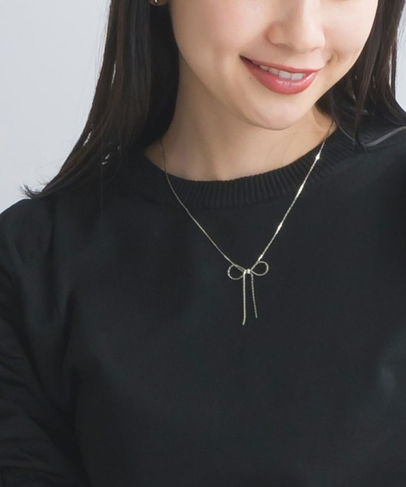 華奢なシルバーのオメガチェーンでシンプルな装いに大人かわいい雰囲気をプラスできます。